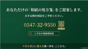 静岡にお住まいの70代以上の皆様、そしてそのご家族様へ。 「自分が元気なうちに、家族が困らないよう整理しておきたい」「先祖代々の土地をどう引き継げばいいのか」「相続税で子供たちに苦労をかけたくない」といった想いを抱えなが […]